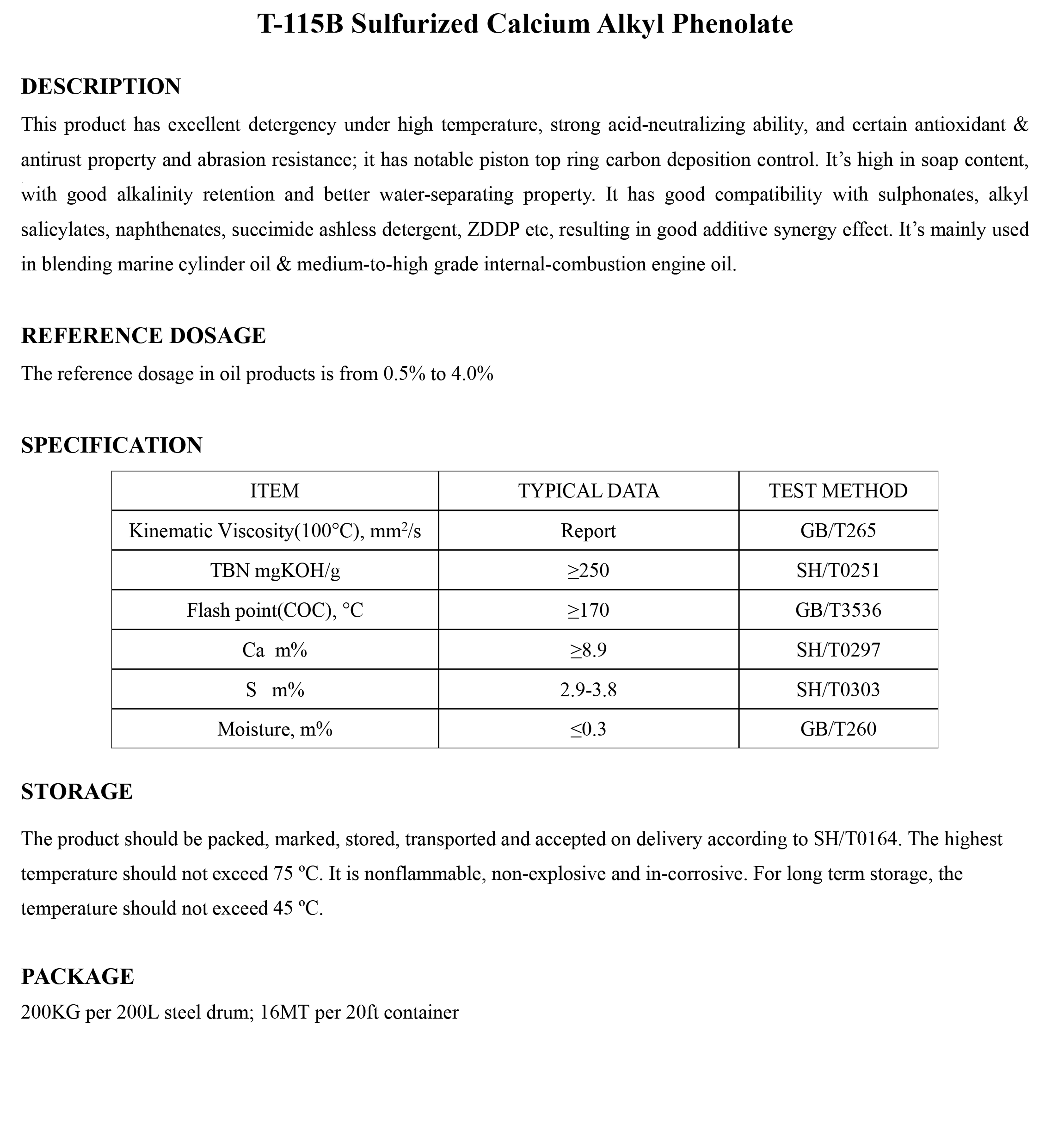 T-115B Sulfurized Calcium Alkyl Phenolate-Detergents-錦州新興石油添加劑有限責(zé)任公司