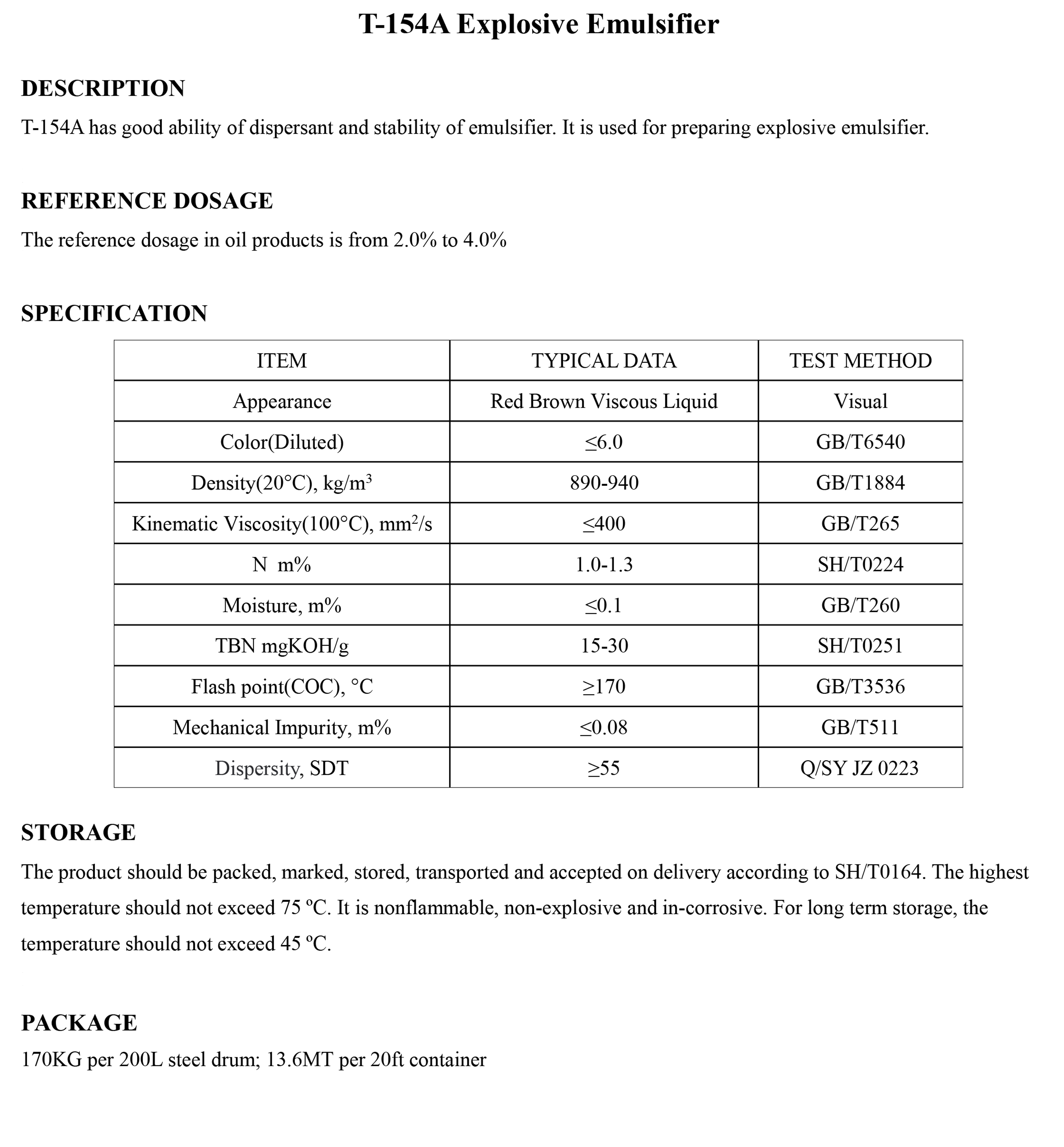 T-154A Explosive Emulsifier-Dispersants-錦州新興石油添加劑有限責任公司