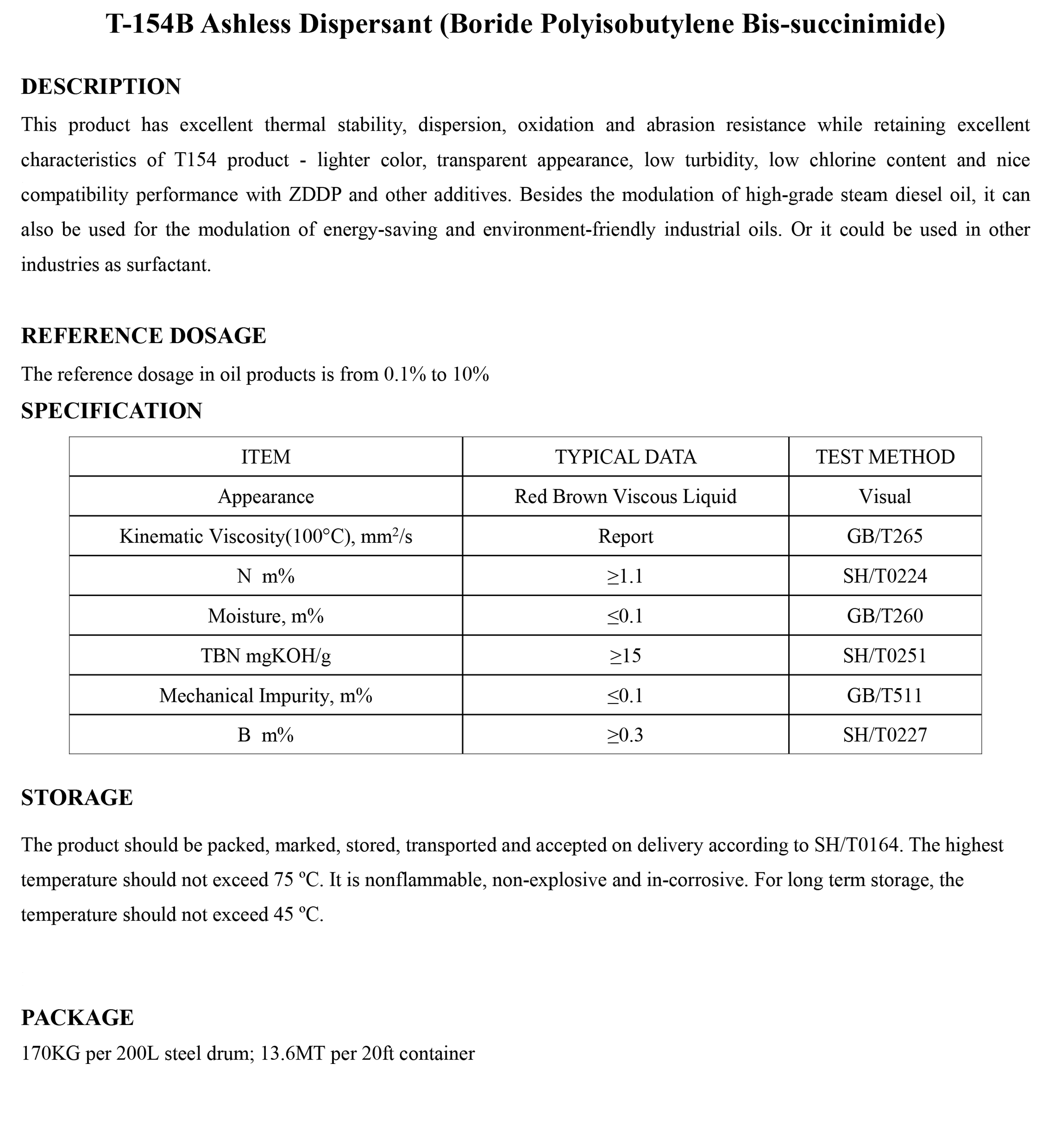 T-154B Ashless Dispersant (Boride Polyisobutylene Bis-succinimide)-Dispersants-錦州新興石油添加劑有限責任公司