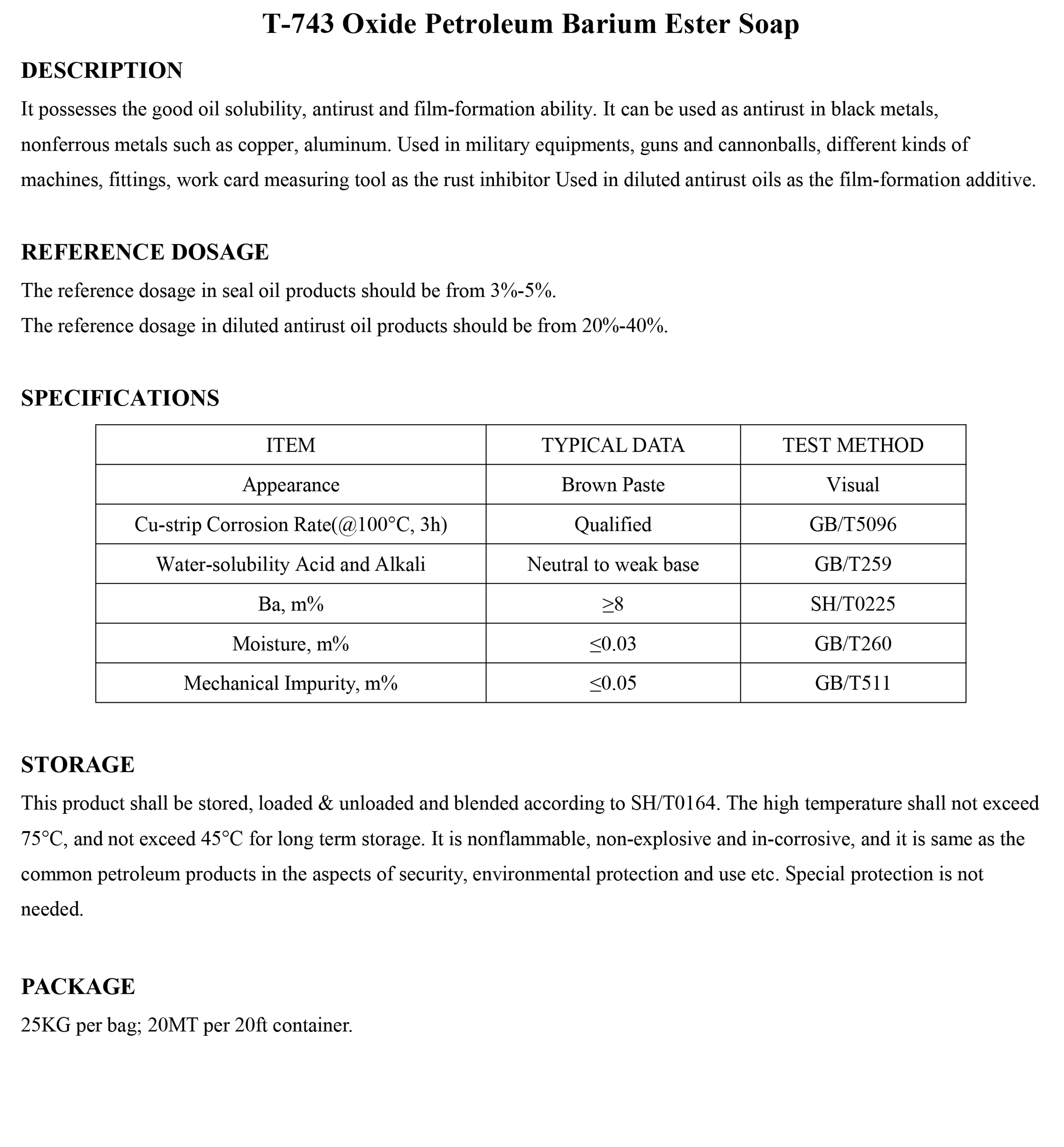T-743 Oxide Petroleum Barium Ester Soap-Antirust Additive-錦州新興石油添加劑有限責(zé)任公司