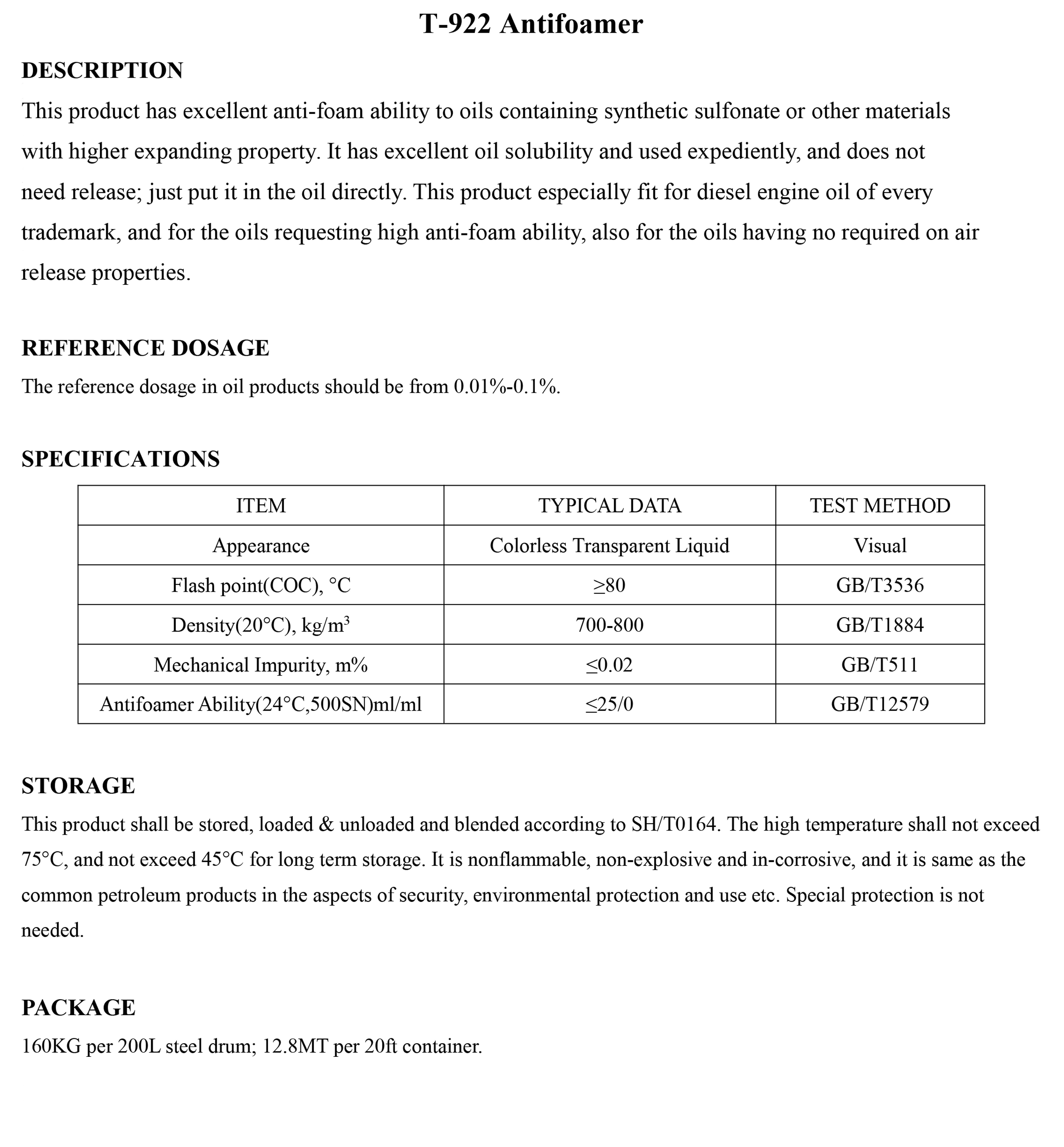 T-922 Antifoamer-Antifoamer-錦州新興石油添加劑有限責任公司