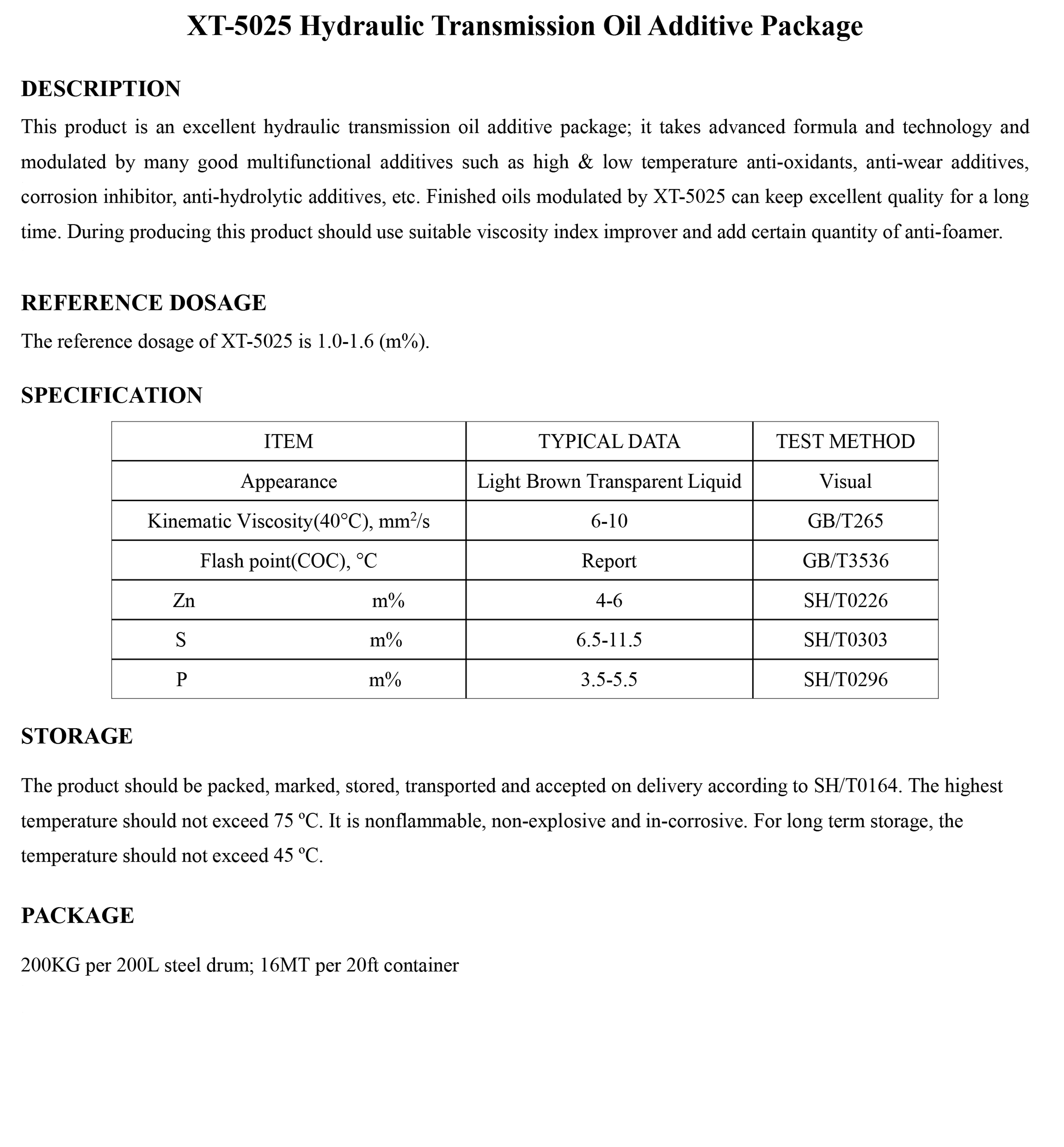 XT-5025 Hydraulic Transmission Oil Additive Package-Hydraulic Oil Additive Package-錦州新興石油添加劑有限責任公司