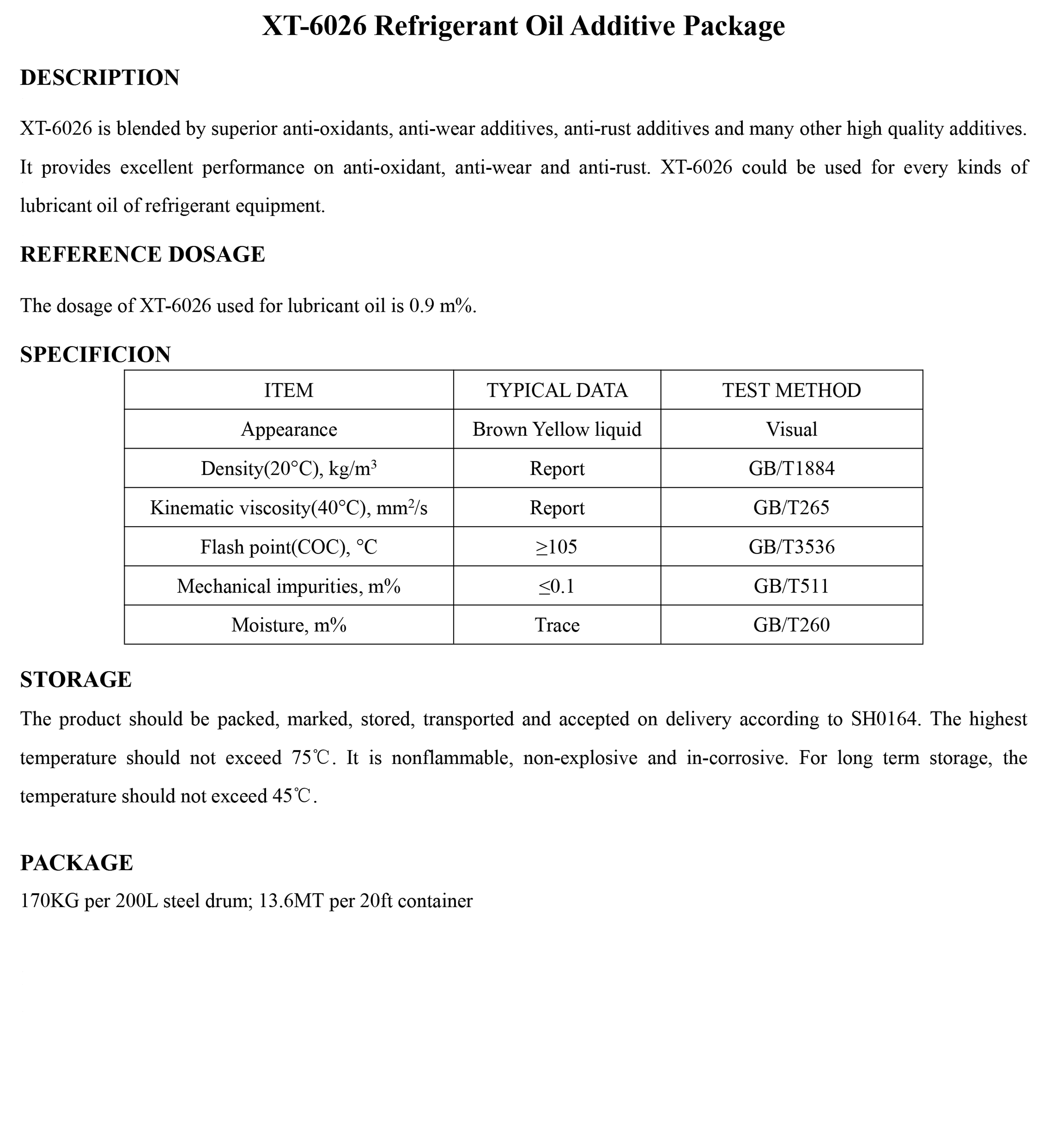 XT-6026 Refrigerant Oil Additive Package-Industrial Oil Additive Package-錦州新興石油添加劑有限責(zé)任公司