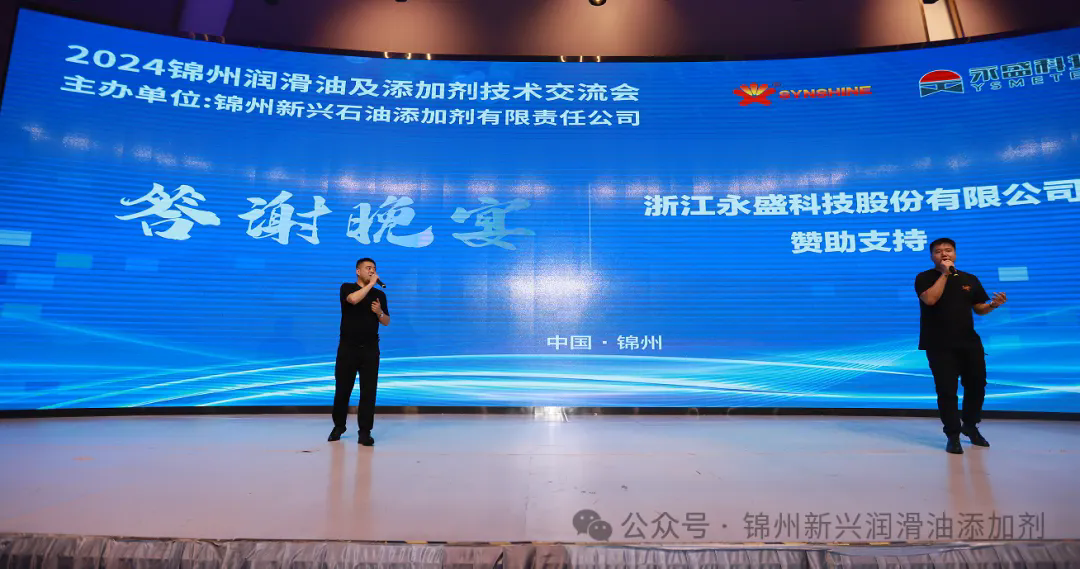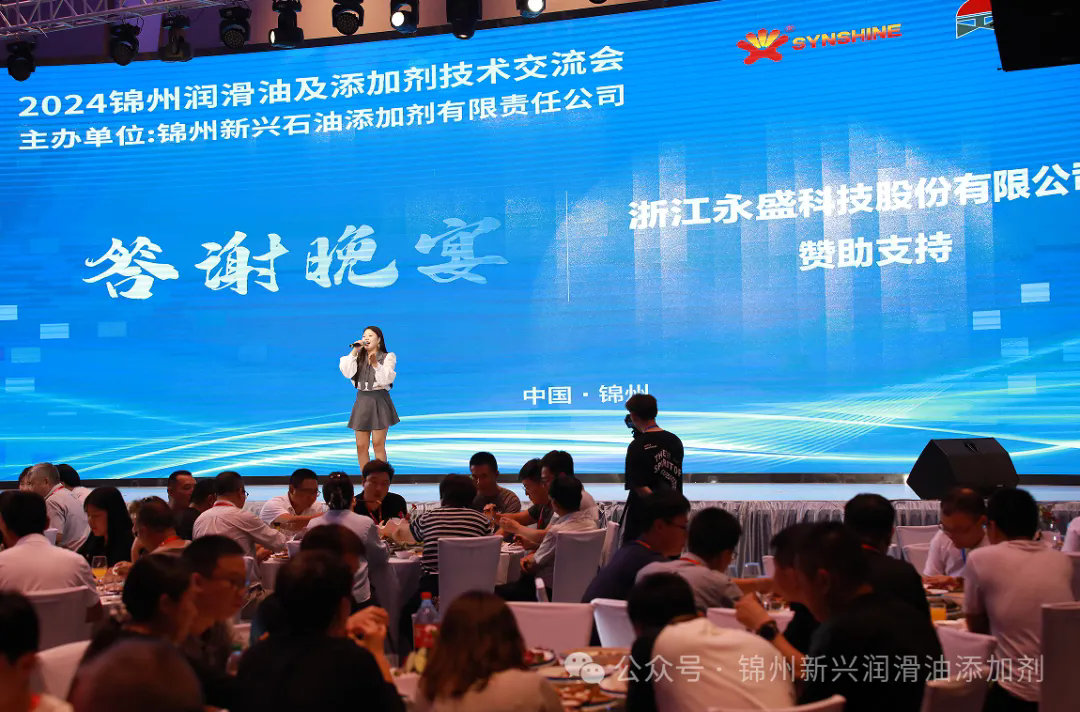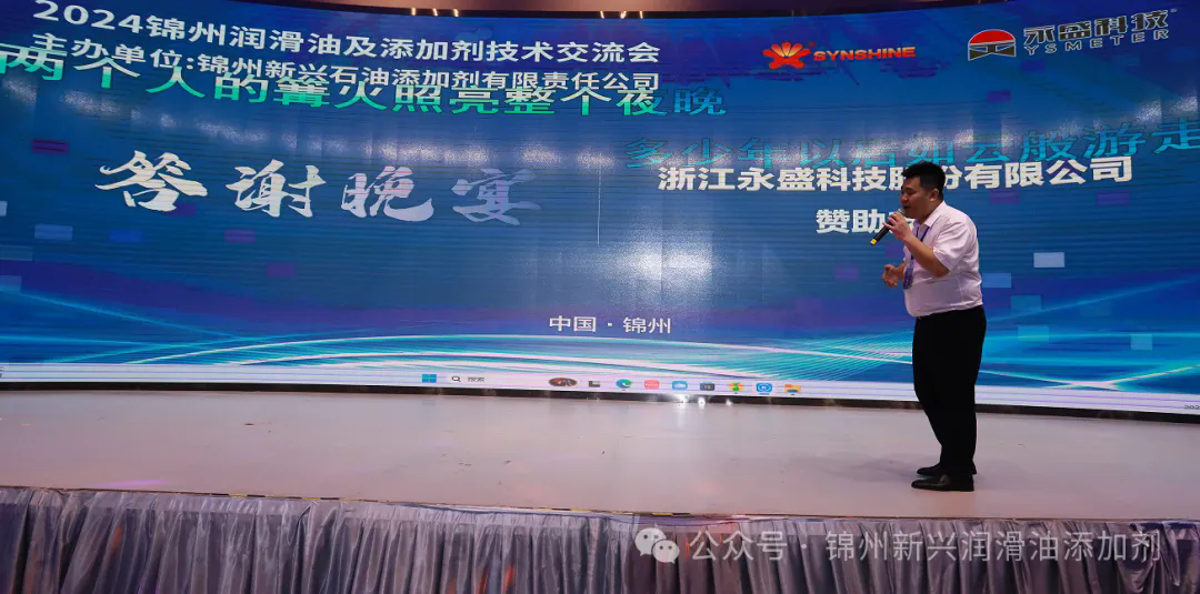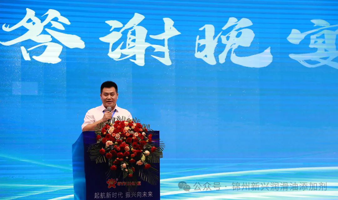 晚宴開場由錦州新興石油添加劑有限責任公司副總經(jīng)理李波致辭,晚宴贊助商浙江永盛科技有限公司銷售總監(jiān)張少明為大家送上了祝福。
