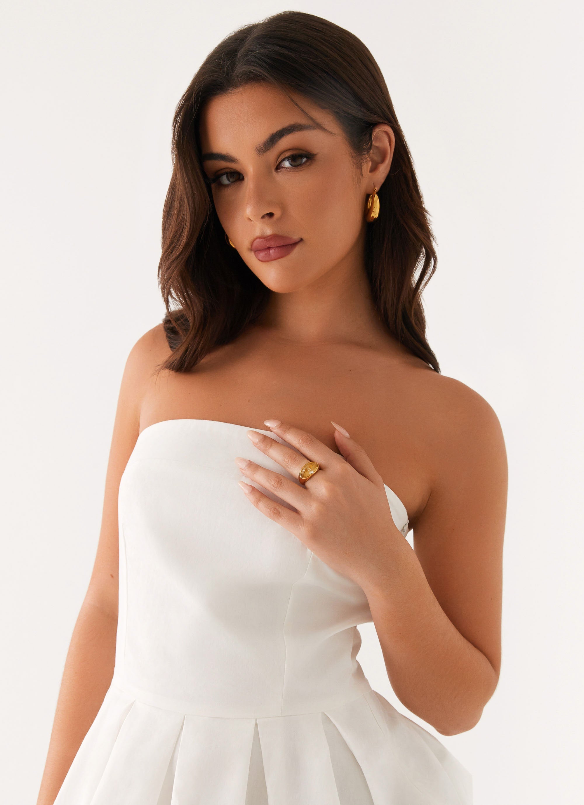 The India Ring is a luxurious statement piece. Featuring gold hardware and intricate stone detailing. it's designed to catch the light and add a touch of elegance to every moment under golden skies.